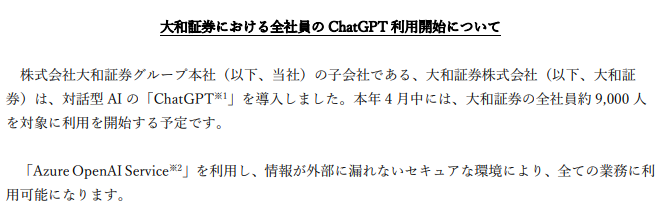○ 参考: 大和証券における全社員の ChatGPT 利用開始について(大和証券)