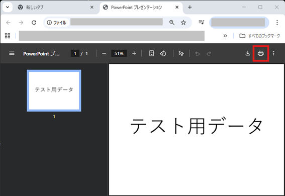 ※アイコンが表示されない場合は、右上メニュー項目内の「印刷」または「Ctrl+P」で表示します。
