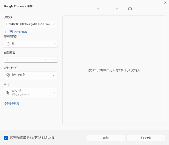 - 「印刷」をクリックします。